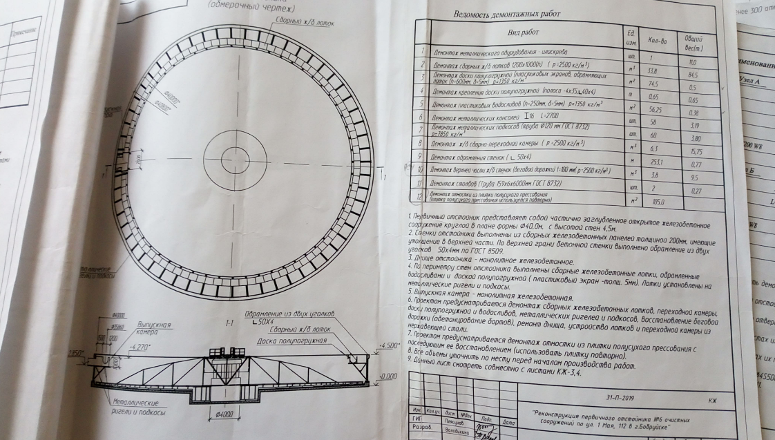 Монтаж изделий: илоскрёб, лотки, кронштейны, камера сб.-перех., доска переливная, жироловка.