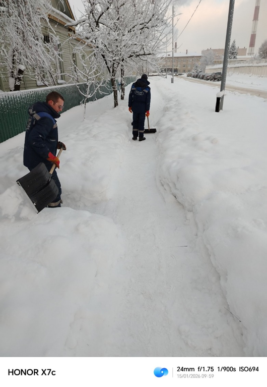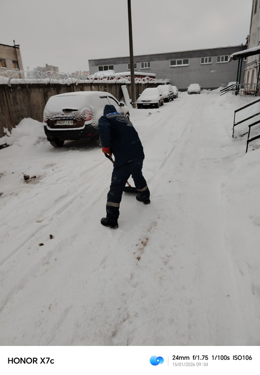 Уборка снега на закрепленной территории, расчистка проходов и тротуаров на придомовой территории по адресам: г. Гомель, ул. Шоссейная 9, 9а, 11, 11а, 10, 14, 16.