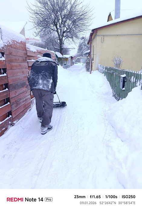 Уборка снега на закрепленной территории, расчистка проходов и тротуаров на придомовой территории по адресам: г. Гомель, ул. Шоссейная 9, 9а, 11, 11а, 10, 14, 16.