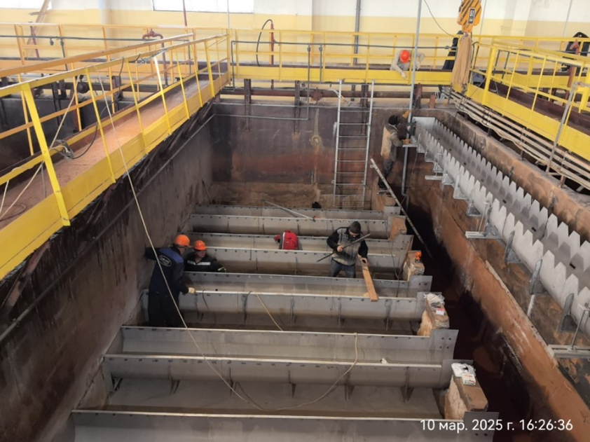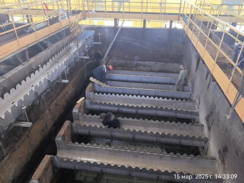 Работы в Петровичи (Драчковский с/с) с 01.03.2025 по 31.03.2025 Произведенные работы: — Засыпка загрузки — Монтаж желобов промывной воды-6шт., обварка желоба излива, монтаж трубной обвязки. — Монтаж трубопровода 160мм. — Монтаж зубчатых переливов. Пасссивация сварочных швов. — Монтаж лотков. — Монтаж кронштейнов изливного лотка. — Монтаж желоба излива перфарированного.